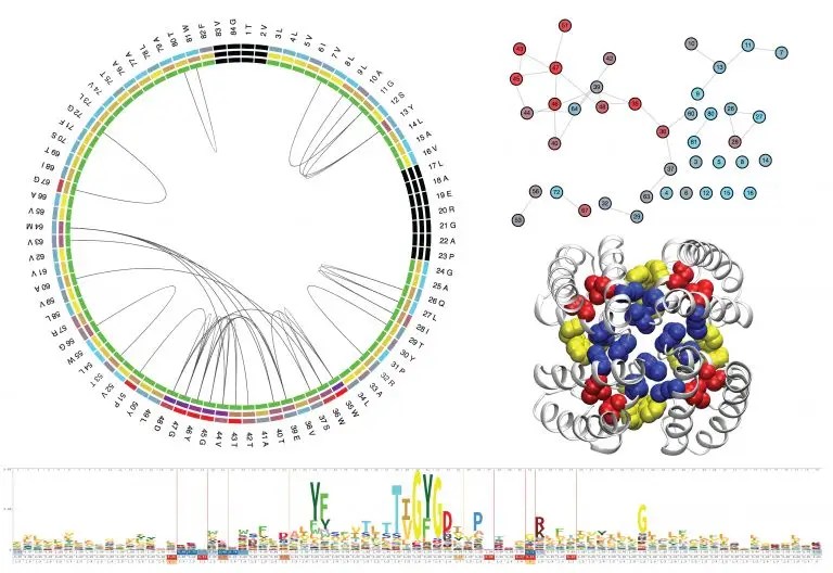 The evolutionary amino-acid correlations based on multiple sequence alignment can identify coevolving protein “sectors” working as group (or cluster) for a particular functional role, or extract pairs of directly coupled residues. I would like to use this coevolutionary information to extract residue contacts critical for the function of the whole protein family.