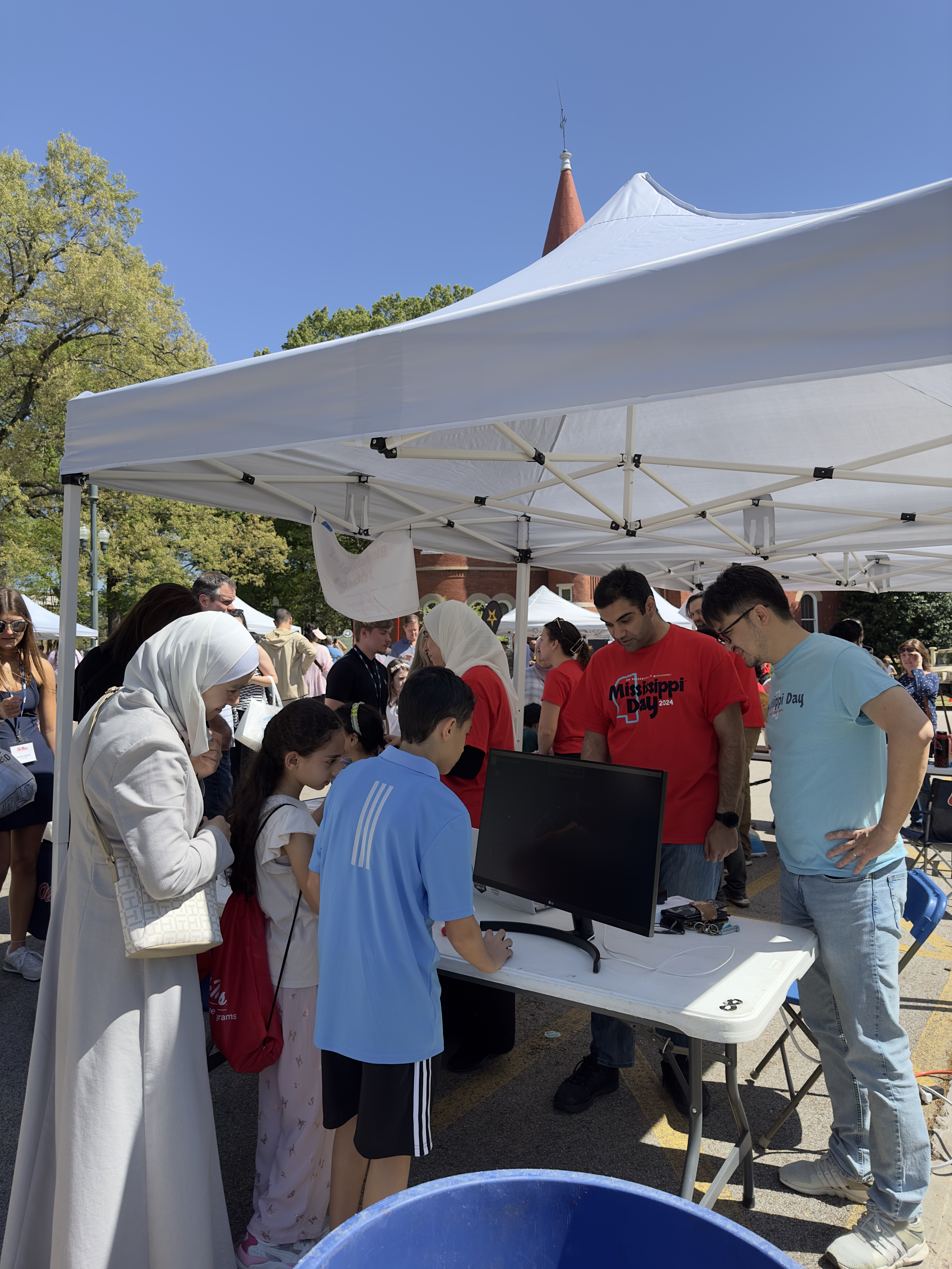 Dr. Jing Li, Amin Akbari Ahangar, Ramya Bandarupalli, and Eslam Elhanafy Introducing the world of computational chemistry and the fascinating journey of drug discovery to Mississippians and inspire kids and high school students to pursue careers in STEM fields.