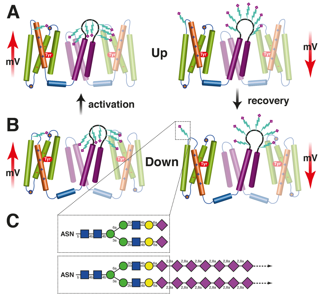 As one of the essential post-translational modifications (PTMs) of proteins, glycosylation can significantly impact ion channel function, not only on protein folding and trafficking but also on gating properties and protein-protein interactions. However, the structural basis of how glycosylation regulates the assembly and gating of ion channels continues to be one of the least investigated aspects. Therefore, we aim to understand the molecular mechanism by which glycosylation modulates ion channel gating and subunit assembly. This structural understanding will lead to new avenues for structure-based drug design targeting diseases caused by aberrant glycosylation and will contribute to other needed precision-medicine approaches to tackle CDGs and neurological disorders.